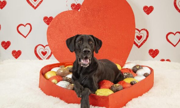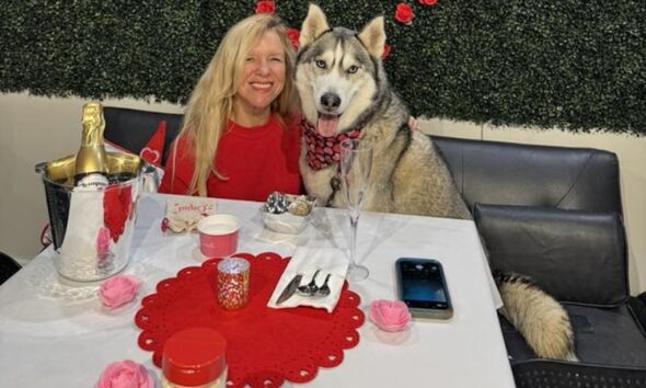Valentine's Day Dinner With Your Pup seatings and Kissing Booth photo sets are among the ways are celebrating the holiday.