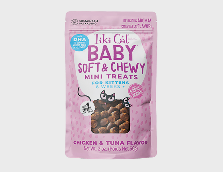 Perfectly sized treats tailored for kittens 6 weeks and older. With real protein as the first ingredient, the minis blend craveable flavor and delicious aroma with DHA to support healthy brain development. Soft and easy to eat. No added grains, gluten, corn, wheat, artificial colors or flavors. In Chicken & Tuna and Tuna & Salmon, both with contain fewer than 1 calorie per treat. 2 oz.