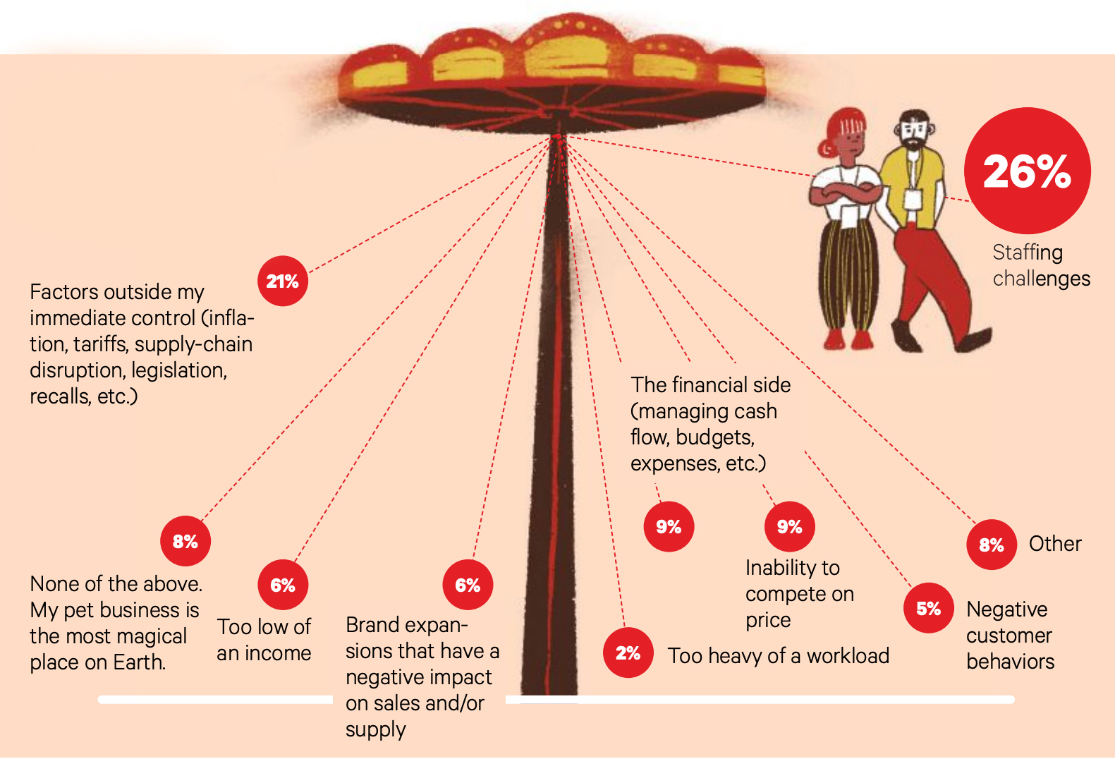 Candace D’Agnolo Tip: These results call out a common reality in the pet industry: Many owners rely on outside income to sustain their business. While that can work short-term and may seem harmless, it’s not sustainable and it’s holding you back. Relying on savings, retirement or credit cards is risky. Instead, focus on building reliable revenue streams, improving margins and paying yourself first. Treat your salary as a non-negotiable expense — because your business should work for you, not just through you.