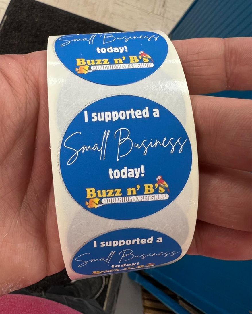 MARKETING When planning your Small Business Saturday promotions, hand out branded stickers. How cute are these above from Buzz n’ B’s Aquarium & Pet Shop? Kids love stickers, and you can encourage parents to snap a pic for their socials and tag your business. They can show off their cute kids and their support for shopping small.