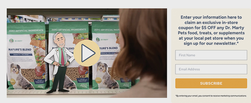 SHOP LOCAL. Marketing throughout drmartypets.com directs pet parents to brick-and-mortar pet stores in their area.