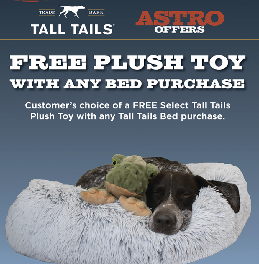 Amy Shiek of Lucky Dogs in Skaneateles, NY, points to quality and promotional support as the reason why Tall Tails takes up 50% of her store’s toy wall and earns 45% of its toy sales. “We love Tall Tails, as a retailer and as dog parents. Customers take advantage of the Astro $ off toys or a free toy when multiples are purchased.”