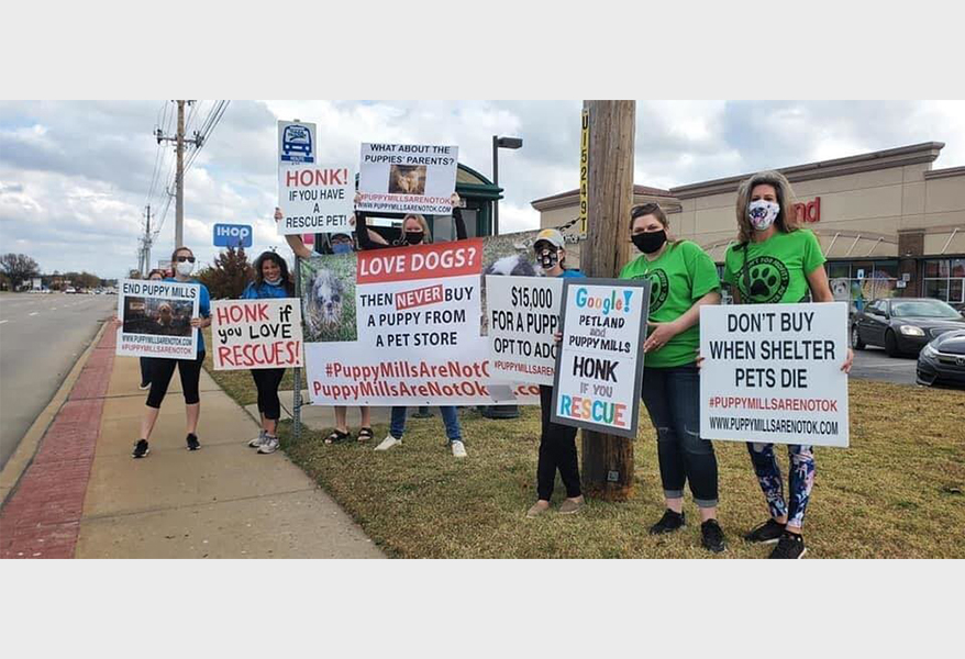 Advocates gather outside a Petland store in Oklahoma urging the company to end live-animal sales. The Rabbit.org Foundation and its Stop Rabbit Sales Coalition are calling for Petland to phase out rabbit sales and adopt humane retail practices similar to Petco and PetSmart. (Image courtesy of Pet Adoption & Welfare Services of Oklahoma [PAWS-OK])