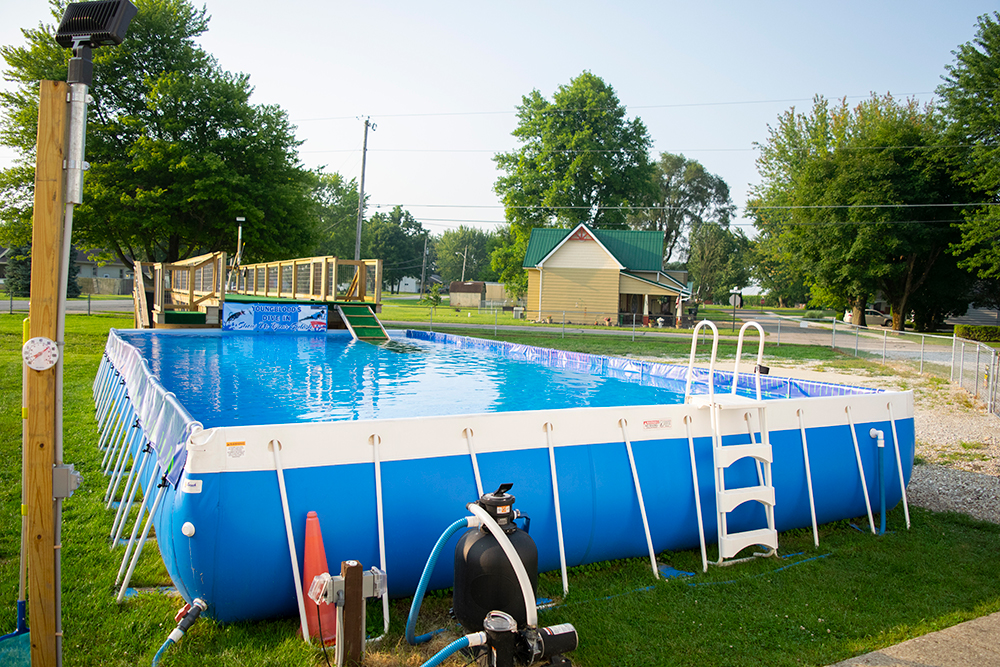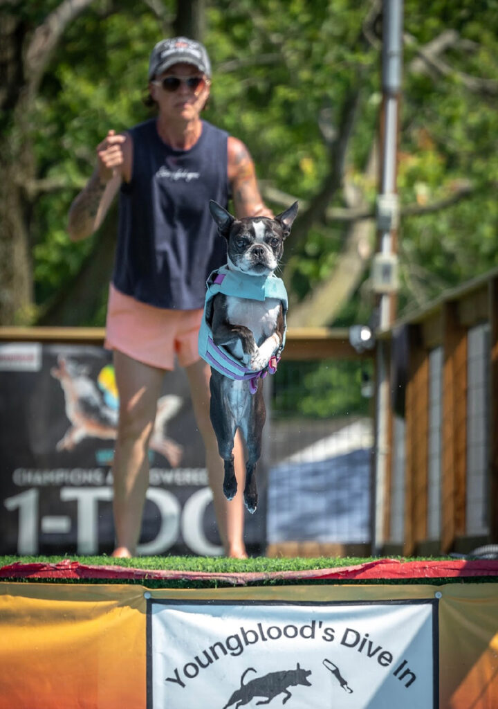 1. DIVE IN!: In 2021, the Youngbloods added the aboveground dock-diving pool, now one of the Center’s most popular features. “It consists of a custom-built dock and 20-by-40-foot pool, all enclosed in a fenced yard,” Sam says. “Local artist Rachel Holmes painted an outdoor ‘Dive In,’ drive-in-movie-themed mural on our building so everyone who does dock diving can get their photo taken in front of it.” Open from April to October, the 4-foot-deep pool is insured, which Sam says was a challenge. “It’s the last thing I thought would be a problem, but it was the hardest part.” The pool has “No Lifeguard” signs posted, along with cameras for monitoring. Users sign annual waivers.