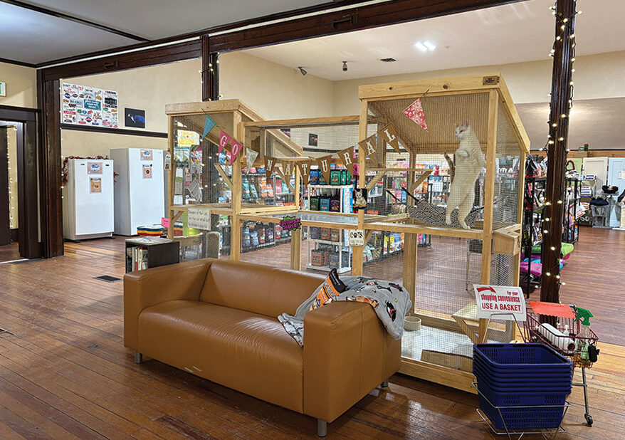 4. KITTY CITY: The Center fosters cats in store for The Biscuit Factory Animal Rescue. Sam says, “We adopted Toothpick Charlie (our store cat) from them, and he is such a hit — our customers are obsessed.” He had a smaller in-store enclosure, but customers did a T-shirt fundraiser and raised enough for a bigger one with numerous shelves, beds and hammocks. “We use the smaller one for foster cats since they don’t have to stay in it for as long.”