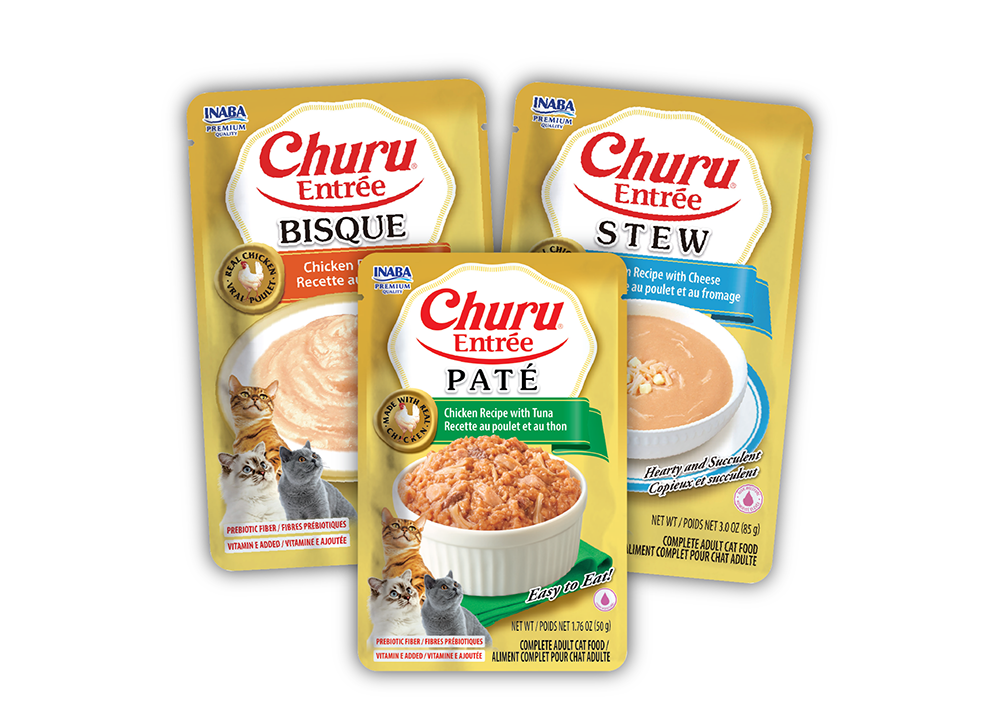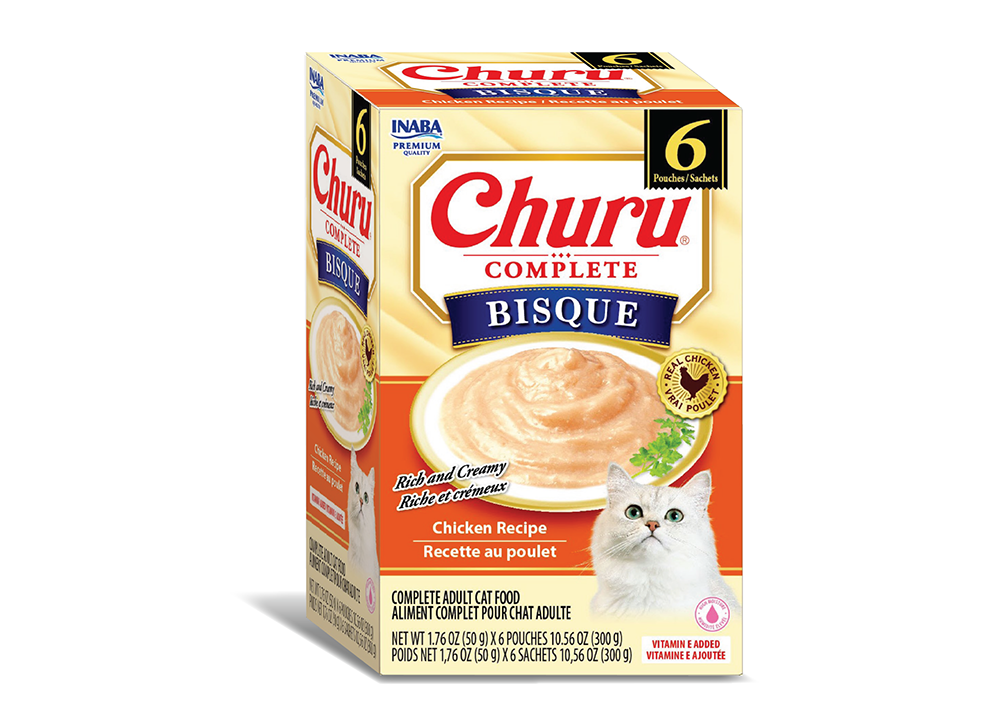 CHURU® POUCHES 6P: The original creamy purée treat, now in a COMPLETE BISQUE. High moisture, real ingredients, and no artificial preservatives or colors.