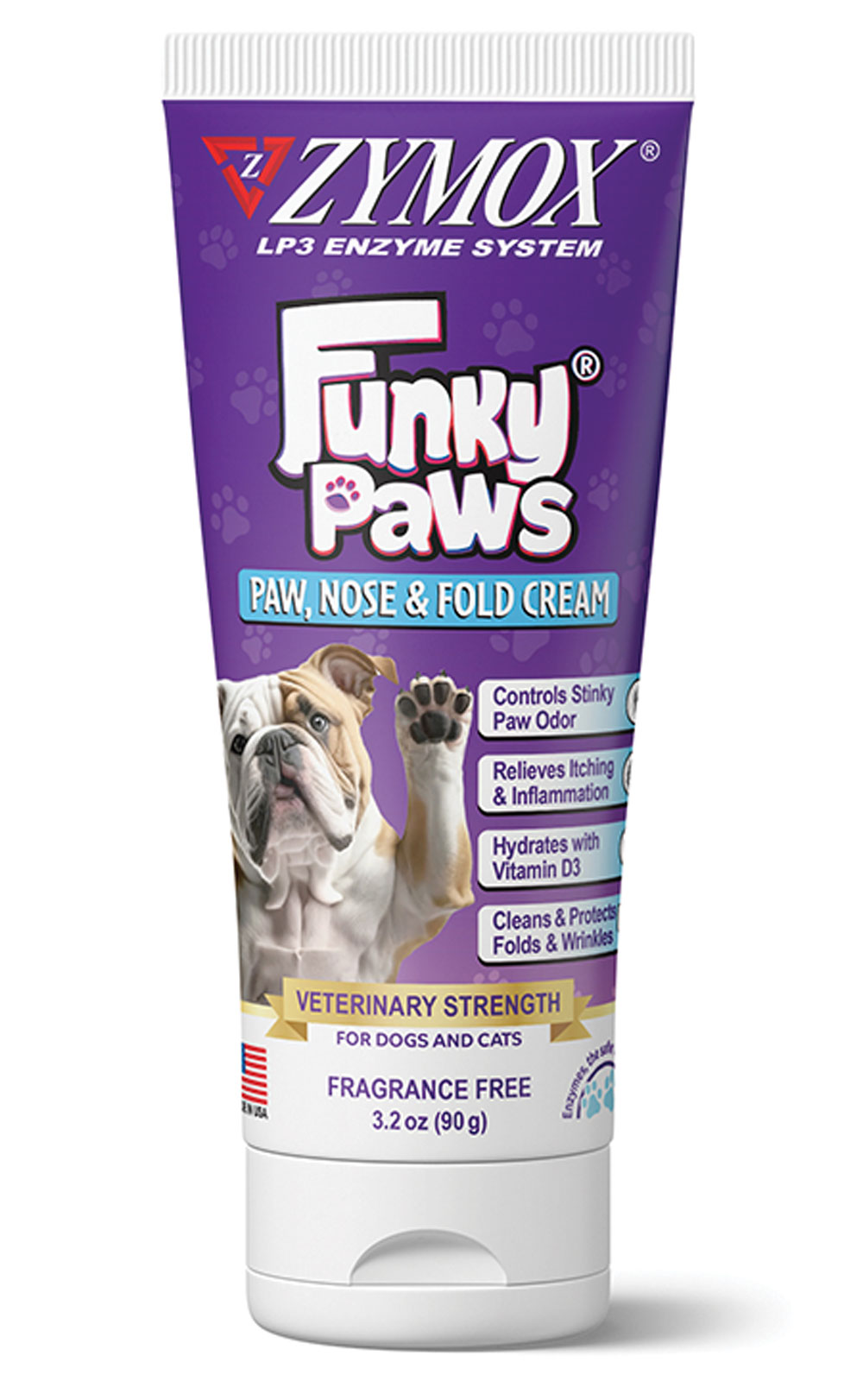 What’s new? We are excited to introduce ZYMOX® Funky Paws®, a new product coming soon to tackle bacterial overgrowth and eliminate unpleasant odors often compared to corn chips. Infused with Vitamin D and Oat Extract, Funky Paws® also soothes and moisturize irritated skin folds and dry paws.