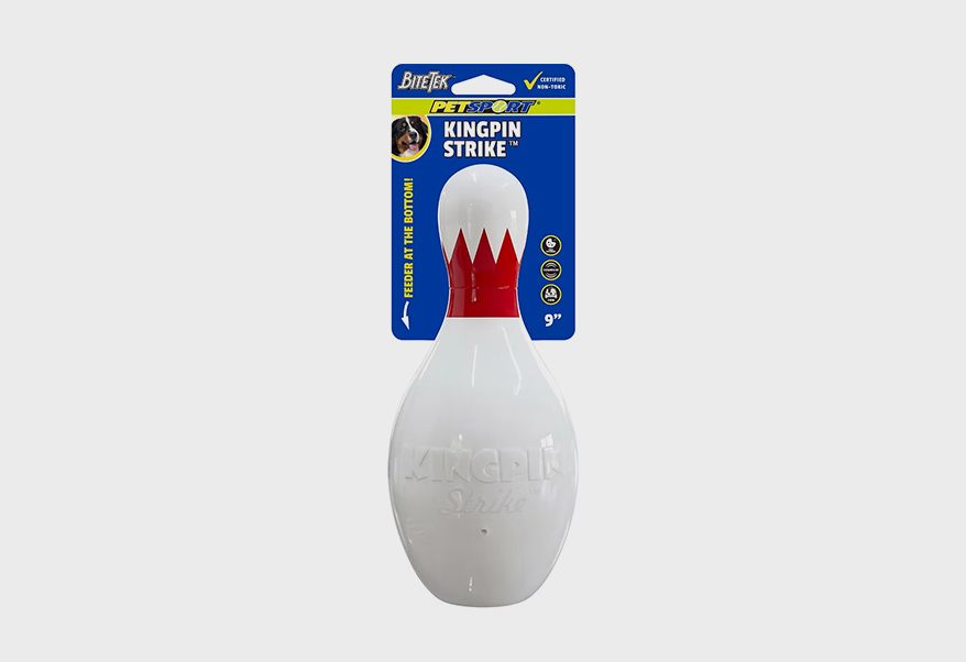 Designed to address boredom and rapid treat consumption, Kingpin Strike stands nine inches tall and tumbles unpredictably as treats dispense slowly from its core. A built-in squawker at the tip encourages continued interaction, helping dogs stay active and mentally stimulated during playtime.