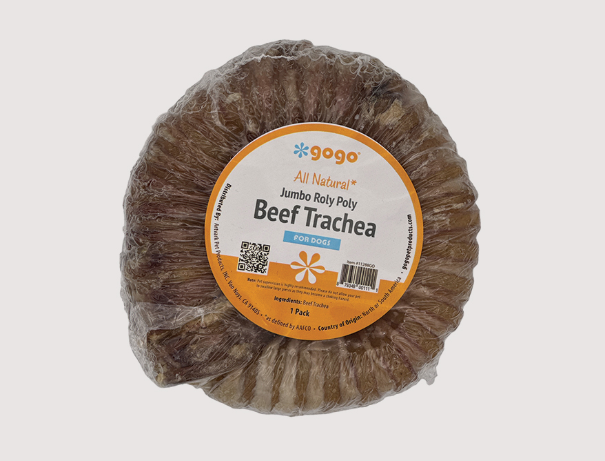 With the Gogo Jumbo Roly Poly Beef Trachea from ARTVARK PET PRODUCTS, dogs get a satisfying crunch that supports their dental health. The 100% single-ingredient, high-protein with natural cartilage chew comes packed with collagen, glucosamine and chondroitin sulfate for hip and joints. 4-4.5 in.