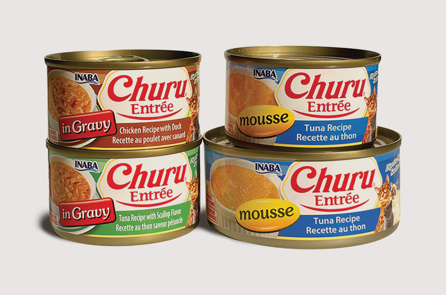 INABA expands beyond treats with Churu Entrée, a 100% complete-and-balanced wet food for adult cats. Irresistibly delicious and made from real chicken or wild-caught tuna, it’s full of hydrating protein and contains no preservatives. Added inulin, a prebiotic fiber, promotes beneficial gut bacteria and improves digestion. In gravy and mousse textures, eight flavors, and 3 and 5.5 oz.