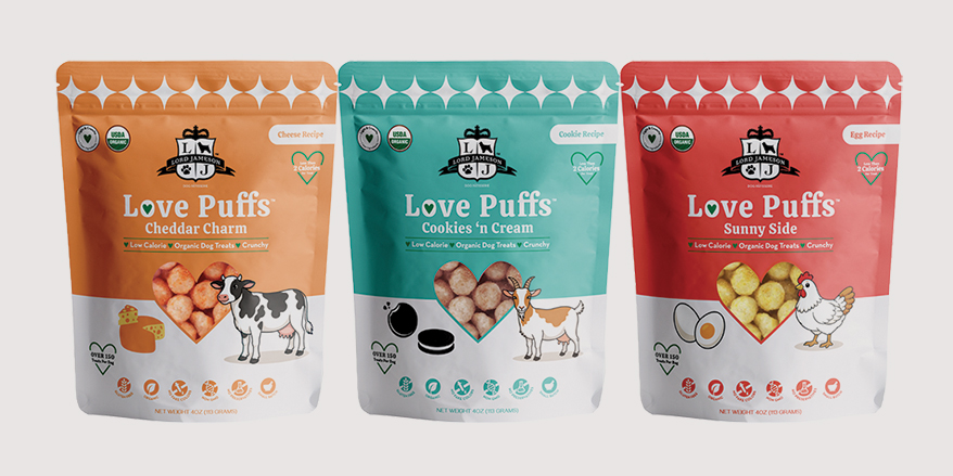 LORD JAMESON expands its Love Puffs line of light and crunchy dog treats with protein-inspired flavor recipes featuring egg, cheese and goat milk. Sunny Side, Cheddar Charm and Cookies & Cream use the same thoughtfully sourced ingredients and a supergrain sorghum base, making them easily digestible. Naturally low in calories and made without artificial colors, flavors or preservatives. Each 4-oz. resealable pouch contains more than 150 treats. Made in the U.S. Lord Jameson touts its USDA Organic Certified, Gluten-Free Certified and WBENC (Women-Owned) Certified statuses.