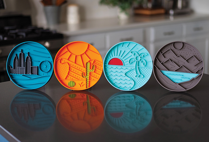 MESSY MUTTS takes pets on an adventure during mealtime with its Silicone Therapeutic Slow Bowl Feeders. In Urban City, Desert, Beach and Mountain, the bi-colored, textured surface and silicone grooves slow down fast eaters. Raised edges contain food, while integrated suction cups keep the bowl in place, preventing spills. Pets also benefit from the soothing therapy of licking, which can be prolonged by freezing milks, broths and other ingredients. Made from high-quality, food-grade silicone, BPA and PVC free, resistant to odors and stains, and safe for use in the freezer, microwave and top rack of dishwasher. 8-in. diameter, holds 2 cups.