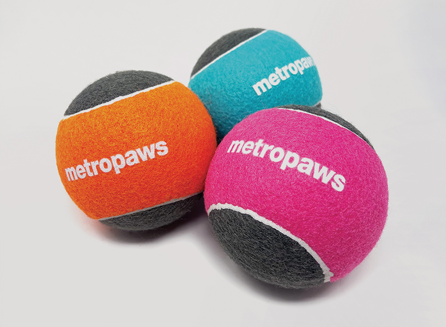 The popular METRO PAWS Tennis Ball now comes in XL! The 4-inch version also features pet-safe natural rubber, cotton yarn, and has an added squeaker to make playtime even more fun for bigger pets. In Orange & Gray, Pink & Gray, and Seafoam & Gray.