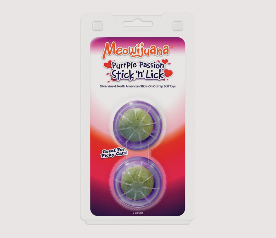 MEOWIJUANA adds to its Compressed Catnip line with the Purrple Passion Stick ‘n’ Lick. The premium blend of catnip and silvervine turns even the calmest kitty into a playful lovebug. Designed to stick to most smooth surfaces, the compressed balls create an exciting and accessible sensory zone that invites licking, cheek rubbing and batting. The stimulating combination of catnip and silvervine engages a cat’s natural instincts while promoting active play and mental enrichment. In a two-pack.