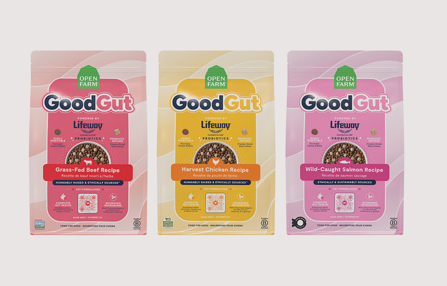 OPEN FARM’s new GoodGut, powered by Lifeway Probiotics, offers the convenience of a premium dog kibble and a daily digestive supplement in one product. Vet formulated by Dr. Moran Tal-Gavriel, Open Farm’s in-house veterinary nutritionist, the food delivers evidence-driven digestive support, higher CFU counts and complete life-stage coverage. Freeze-dried raw pieces mix with nutrient-dense kibble in an easily digestible size with prebiotics, probiotics and postbiotics that support gut health. Grass-Fed Beef, Harvest Chicken, and Wild-Caught Salmon use 100% humanely raised and sustainably sourced fish and meat; traceable ingredients; and non-GMO grains, fruits and vegetables. In 3.5 and 19 lb. Made in the U.S.