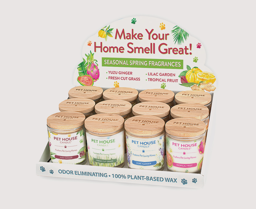 PET HOUSE BY ONE FUR ALL adds to its selection of candles that smell good enough to eat with spring scent Yuzu Ginger. The invigorating blend of sparkling yuzu, fresh ginger and soft white pepper balances with ginger lily, lemon balm and soothing hinoki wood for a bright, uplifting fragrance. 9 oz. Yuzu Ginger features prominently in the 2026 spring candle display, alongside Fresh Cut Grass, Lilac Garden and Tropical Fruit. Made in the U.S.