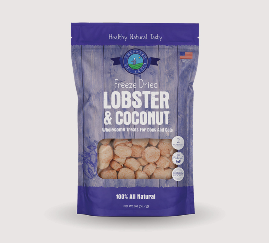 Lobster & Coconut Freeze-Dried Treats from SHEPHERD BOY FARMS combine lobster sourced off the Pacific Coast of California with organic coconut flour. Naturally rich lobster aroma entices dogs and cats, while organic coconut flour adds fiber and healthy fats to support digestion and skin health. Freeze-dried to preserve flavor and nutrients without additives or preservatives, the treats are a luxurious way to reward pets while staying true to clean, minimal ingredients. 2 and 5 oz. Made in the U.S.