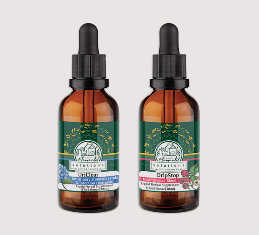 Two herbal tinctures from SOLUTIONS PET PRODUCTS support urinary system issues in dogs and cats. Uriclear addresses stones and crystals by “loosening” the urinary tract, promoting optimal flow and detoxification. Drip Stop helps with incontinence and bladder weakness by “tightening” and toning the urinary tract, strengthening and stabilizing urinary tissues while reducing discomfort and promoting overall tract resilience. 1 oz. Made in the U.S. POP materials, training and other support available.