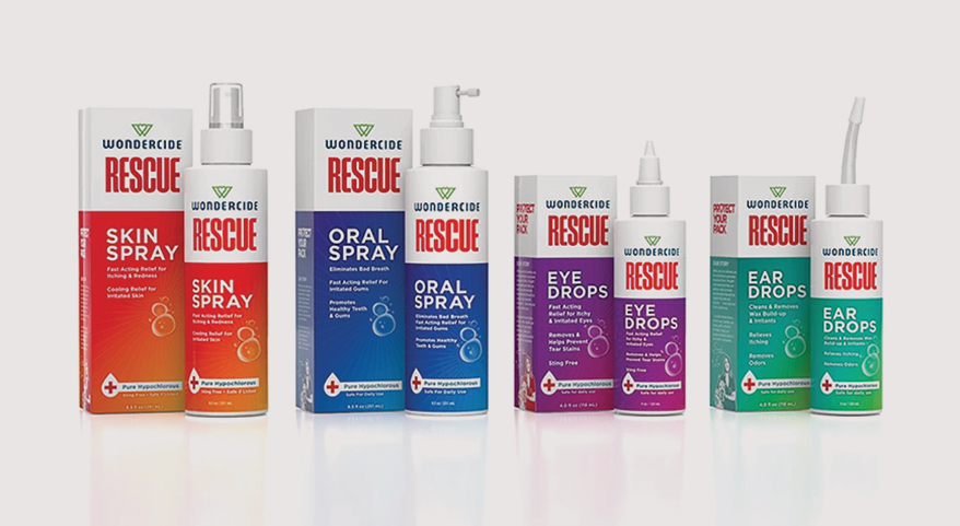 WONDERCIDE launches its RESCUE line of pet wellness products designed to soothe inflammation, reduce irritation and accelerate the healing process. Main ingredient hypochlorous acid works in harmony with pets’ natural defenses to help defend against bacteria and irritation and support healing, and has a safety profile similar to saline. Skin Spray relieves itching, redness and irritated skin. Oral Spray eliminates bad breath and soothes irritated gums. Ear Drops clean wax buildup and relieve itching, redness and odor. Eye Drops clean discharge and soothe itchy, irritated eyes. 4-8.5 oz. Made in the U.S.