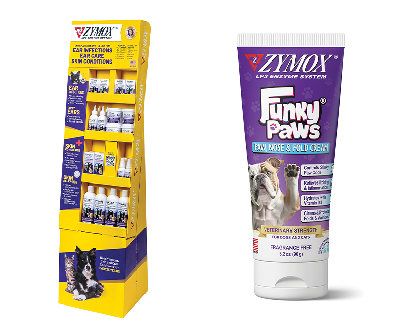 SPONSORED CONTENT New ZYMOX® Funky Paws® delivers the first enzyme-based solution for smelly, irritated paws. Every groomer and pet store owner knows the question: “Do you have anything to help with stinky, corn chip paws?” For years, Pet King Brands heard this request repeatedly from grooming partners until they decided to create the definitive solution. The result is ZYMOX® Funky Paws® — the first and only enzyme-based paw, nose, and fold cream on the market, backed by over 40 years of advanced LP3 Enzyme System technology. From left to right: The new ZYMOX Floor Display works as your “silent salesman,” offering Funky Paws alongside the brand’s complete dermatology line. | Funky Paws Paw, Nose & Fold Cream is the only product of its kind on the market – offering independent retailers a unique selling and educational opportunity. MSRP: $14.99 Why This Category-First Product is Perfect for Independent Retailers Unlike big box stores that focus on basic moisturizing balms, independent pet retailers can now offer something truly innovative. Funky Paws doesn’t just moisturize — it eliminates the root cause of that distinctive “corn chip” smell by targeting the bacteria and yeast that create paw odor and irritation. The LP3 Enzyme System uses three naturally derived enzymes that work synergistically to create a powerful antimicrobial system. Unlike antibiotics, these advanced antimicrobial enzymes selectively target single-celled organisms, preventing disturbance to the normal flora or creating antibiotic resistance concerns. The Retailer Advantage: Education Sells Pet King Brands has built their reputation as a vet-recommended educational source, and this expertise transfers directly to your sales floor. When customers ask about enzymatic treatments, you can confidently explain that these natural dairy-derived enzymes require no pre-cleaning and work with just once-daily application — making pet care less strenuous for both owner and pet. Funky Paws works for both preventative care and active treatment, making it suitable for pets of all sizes and ages without risk of irritation. Whether customers need help with post-grooming care, seasonal allergies or chronic skin issues in breeds like French Bulldogs, Shar Peis or Sphynx cats, you have the solution. Year-Round Sales Opportunity Funky Paws shines as an evergreen product. Summer brings increased demand from outdoor activities and swimming. Spring triggers allergy-related paw irritation. Fall and winter create opportunities for addressing dry, cracked paws and skin folds. This consistent demand cycle means steady inventory turnover throughout the year. Cross-Selling Made Simple The new ZYMOX Floor Display positions Funky Paws alongside the complete dermatology line, including Ear Wipes and the Advanced Enzymatic Shampoo and Conditioner with Oat Extract. This versatile display functions as both a standalone POP unit and wing panel, with eye-catching graphics that act as your “silent salesman.” Combined use of enzyme products actually promotes efficiency, making it natural to recommend the Advanced Enzymatic Shampoo and Conditioner alongside Funky Paws purchases. These complementary products create larger basket sales while delivering superior results that keep customers returning. Competitive Pricing with Superior Results At $14.99 retail, Funky Paws is competitively priced with traditional paw balms and creams but delivers unique value through its enzyme-based formula. The healthy margins available through Pet King Brands’ distribution partners mean you can confidently recommend this product knowing it solves real problems for customers while supporting your bottom line. Marketing Support That Works Pet King Brands backs retailers with comprehensive support through retail pet training modules, IndiePet event sponsorships including Neighborhood Pet Store Day and rewards programs available at LearnAboutZYMOX.com. Their “helping retailers help pet owners” philosophy means you get the educational tools needed to position Funky Paws effectively. The Bottom Line Funky Paws represents everything independent retailers need: a first-to-market innovation, educational selling opportunities, healthy margins and year-round demand. Most importantly, it solves a real problem that customers have been asking about for years. Contact your Pet King Brands representative to learn about the new ZYMOX Funky Paws and how this category-first product can differentiate your store. W ZYMOX.com | E [email protected] | P 888.752.5487