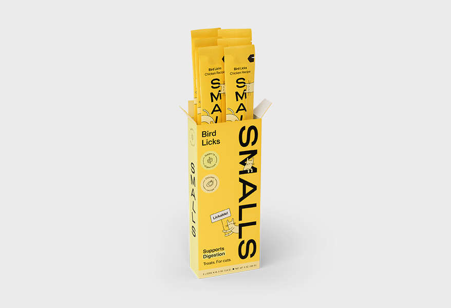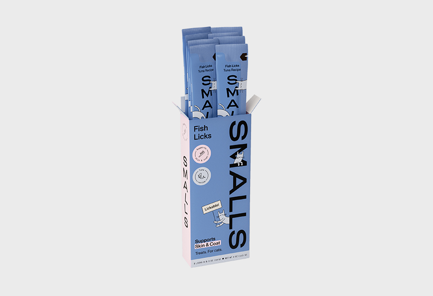 Smalls’ Licks are all-natural, made without artificial flavors, corn, wheat, soy, preservatives, or gums. Each pouch is packed with real chicken, tuna, or salmon broth, delivering a smooth, lickable texture cats love with no junk—just lick-it-good ingredients.