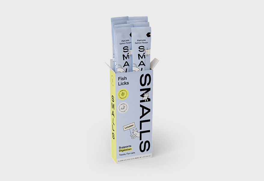 Smalls’ Licks are all-natural, made without artificial flavors, corn, wheat, soy, preservatives, or gums. Each pouch is packed with real chicken, tuna, or salmon broth, delivering a smooth, lickable texture cats love with no junk—just lick-it-good ingredients.