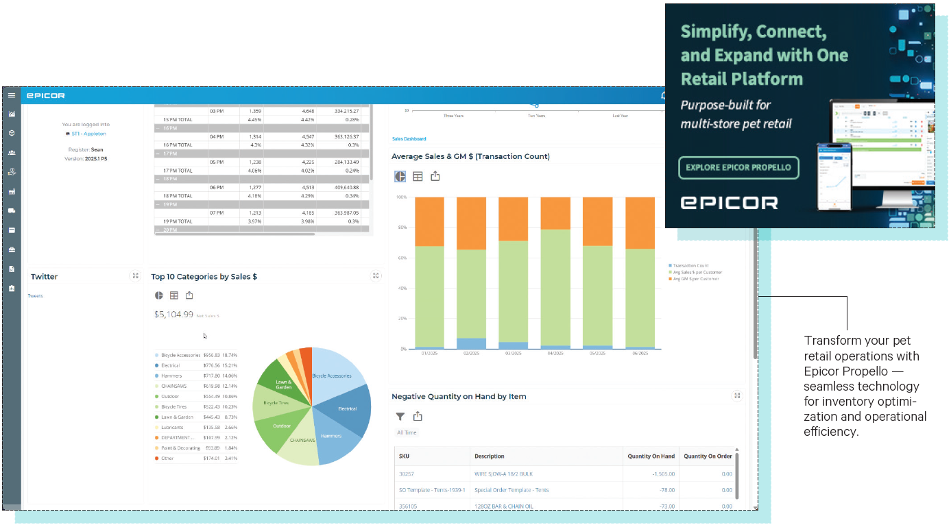 SPONSORED CONTENT Epicor Propello: Helping Independent Pet Retailers Thrive Independent pet retailers face unique challenges in today’s competitive market, from managing complex supply chains to creating personalized customer experiences. Epicor understands these needs and has designed Epicor Propello, a modern retail management platform built to help pet retailers work smarter, engage better, and grow without limits. WORK SMARTER Propello streamlines operations so you can focus on what matters most, your customers and their pets. With advanced inventory management and automated replenishment tools, you’ll always have the right products on hand without overstocking. Real-time data insights empower you to make informed decisions quickly, reducing manual tasks and improving efficiency across your business. ENGAGE BETTER Your customers expect more than just products; they want personalized experiences. Propello helps you deliver by integrating loyalty programs, targeted promotions, and omnichannel capabilities. Whether your customers shop in-store or online, Propello ensures a seamless experience that keeps them coming back. GROW WITHOUT LIMITS As your business expands, Propello grows with you. Its scalable architecture supports multiple locations, diverse product lines, and evolving customer demands. Plus, with Epicor’s robust supply chain capabilities, you can source products efficiently and maintain strong vendor relationships, giving you the flexibility to adapt and thrive in a dynamic market. WHY EPICOR FOR PET RETAIL? Epicor has decades of experience serving independent retailers, and our solutions are tailored to the unique needs of the pet industry. From grooming services to specialty products, Propello provides the tools you need to stay competitive and deliver exceptional customer experiences. To learn more about how Epicor Propello can help you build your business, click here. Ready to take your pet retail business to the next level?Learn more about Epicor Propello and Epicor’s pet retail solutions. E: [email protected] P: (800) 999-1809 W: Epicor.com/propello-petsplus