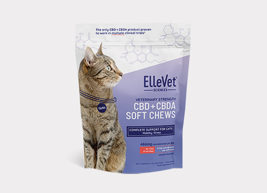 Formulated with proprietary CBD + CBDA oil for mobility and calming support, the salmon-flavored soft chews for cats are easy to give, for a positive and stress-free experience. Safe and effective, they calm without sedation. Backed by research from ElleVet’s palatability, safety and pharmacokinetic studies, ensuring appropriate