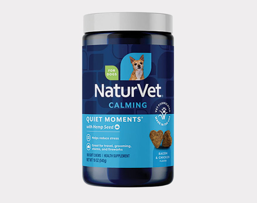 The calming soft chews support dogs stressed or anxious from loud noises, travel, grooming or separation. These veterinarian-formulated supplements — now with a new look — contain a unique blend of hemp seed, thiamine and L-tryptophan to support relaxation and reduce tension. The formula also includes ginger for sensitive stomachs and melatonin for relaxation. In Bacon & Chicken flavor. For dogs 12 weeks and older. 60 and 180 count. Made in the U.S.