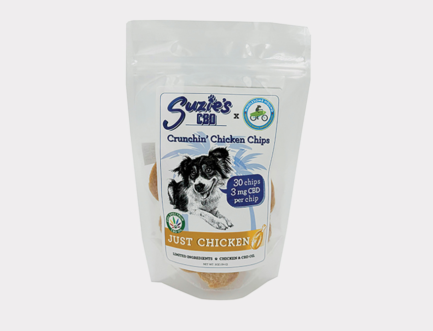Light, crunchy dehydrated chips made with full-spectrum CBD oil and human-grade chicken tenderloin. Popular with even picky dogs, they make a great delivery method. Includes 3 mg. CBD per chip, with 30 chips per bag for 90 mg. CBD total in each package. No preservatives, gluten, corn or soy. 100% satisfaction guarantee. 3 oz. Made in the U.S. Sold exclusively through independent retailers. Educational literature, Astro Loyalty available.
