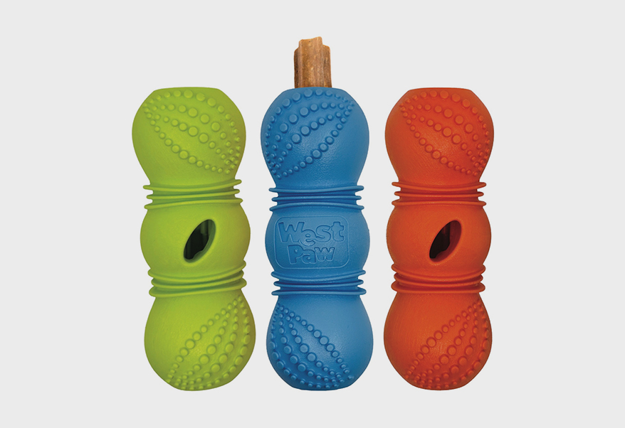 Flossr’s raised dental nubs and flexible rings help scrub plaque and gently massage dogs’ gums, while its design directs licking and chewing to where the nubs and rings do their best work. It’s designed to be used with West Paw’s Dental Sticks, Creamy Treats and Montana Beef Sticks to extend chewing time for better engagement.