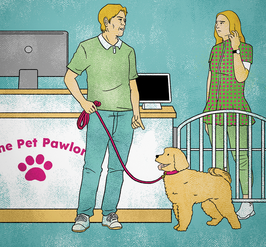 This happens a lot. The person who cares most about the groom is rarely the person who drops off, and then they are horrified by what the person who dropped off instructed us to do. I tell customers that the person scheduling should tell us what they want and that we will call to discuss if that is not possible. I look at pick-up/drop-off dads like my own husband and business partner, who was not allowed to take our little kids to get haircuts because it often ended in tears. (Usually mine.) I actually told the salon next door to our shop that my husband was not allowed to bring the kids in and to get me if they showed up without me. (It was done humorously.) Make your policy clear when scheduling to avoid the issues.