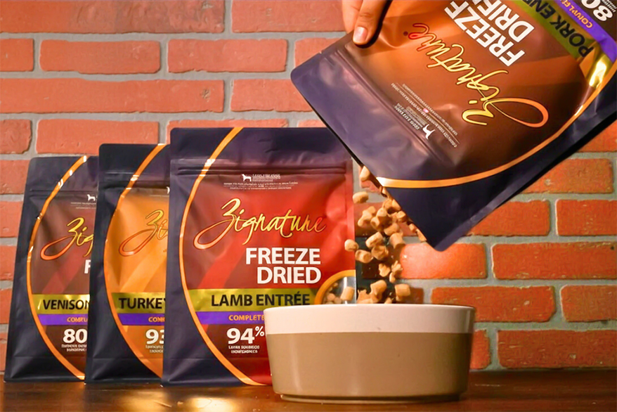 Unlike many freeze-dried products currently on the market, Zignature Freeze-Dried Entrées are designed to serve as a full meal, topper, treat, mix-in, or can be rehydrated for a softer texture and enhanced aroma, making raw-inspired diets more approachable and affordable for pet parents.